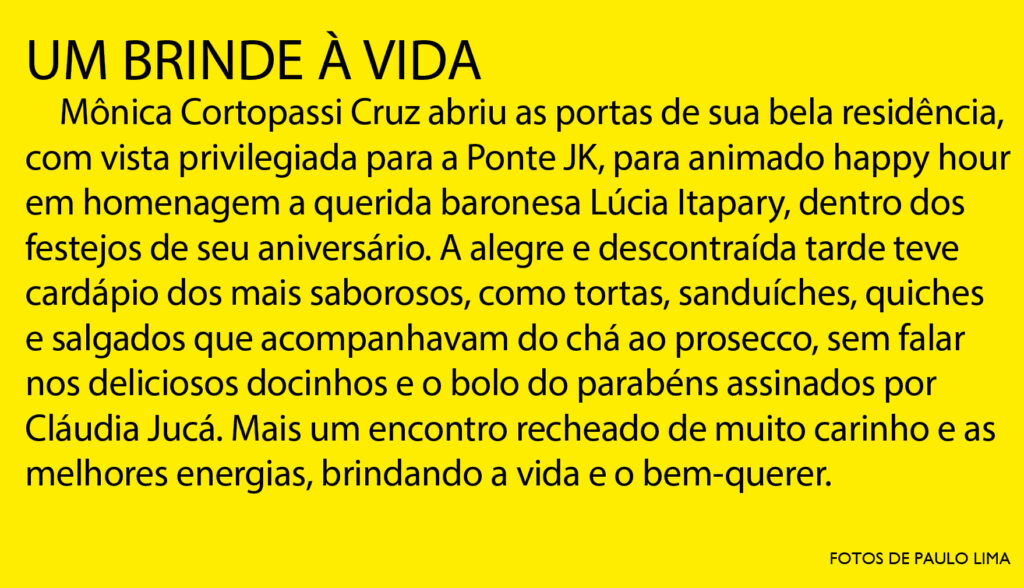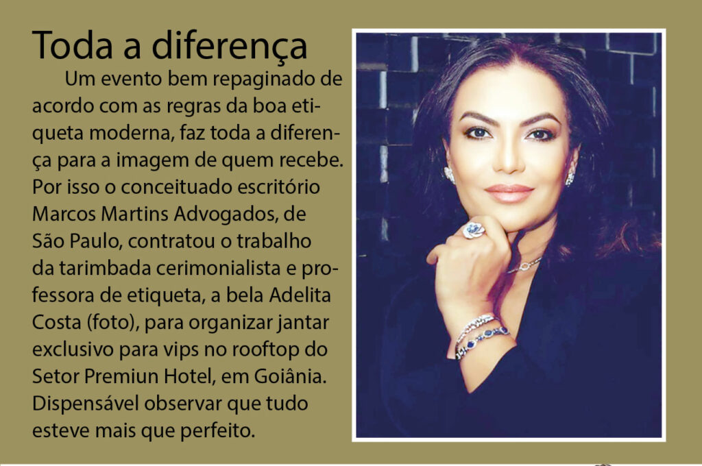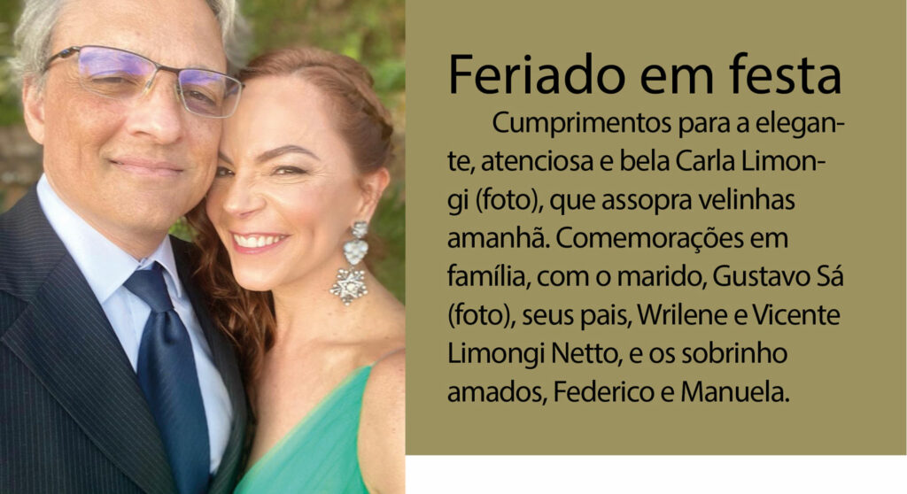 Colunista de pura tradição, Luiz Carlos de Moraes Rodrigues nunca deixou arrefecer o glamour da verdadeira sociedade. Ele, que é festejado nos melhores círculos, será alvo de carinhosas homenagens pela passagem de seu aniversário. Vai ser durante um elegante almoço, dia 26 de setembro, no Restaurante Bougainville do Castro’s Park Hotel, o cinco estrelas da capital dos goianos. À frente da organização, a amiga sempre fiel Izaíra Calixo. Encontro de chiques que é destaque no calendário social.