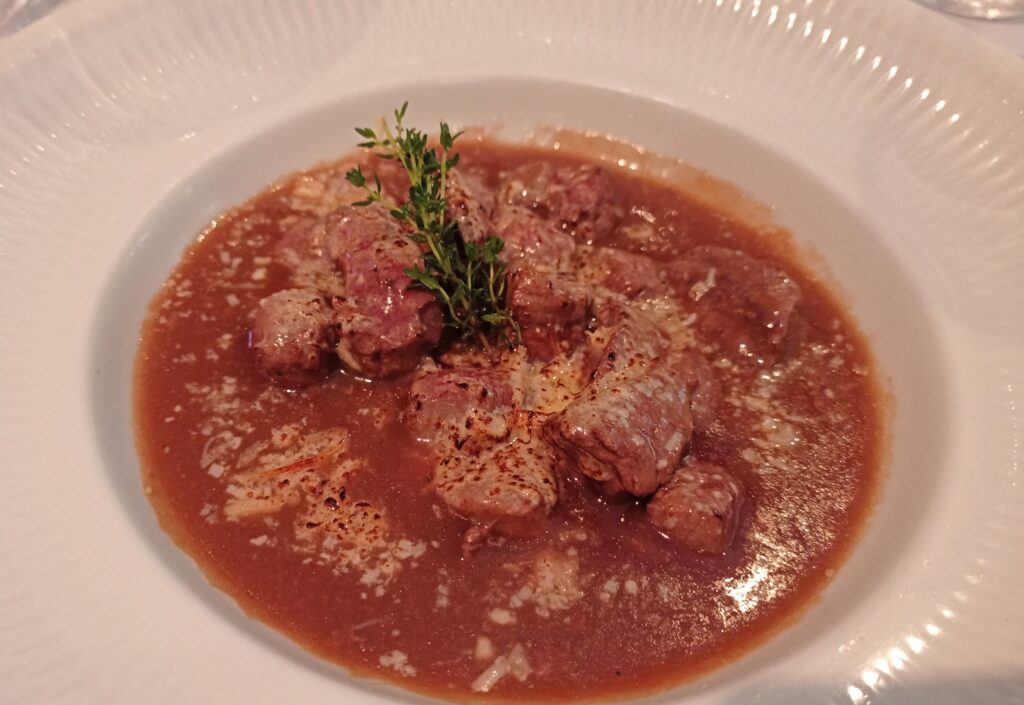 A carne estava impecável, mal passada, e foi finalizada à mesa com carvão em brasa para derreter a manteiga de tutano, fazendo um verdadeiro espetáculo como Jord diz ter aprendido nos eventos “Churrascada” em São Paulo.