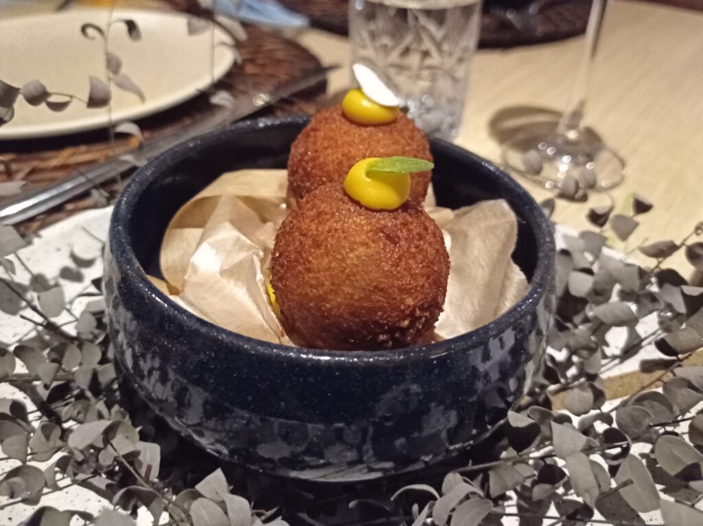 A Rabanada salgada, com molho hollandaise super amanteigado, queijo Brie e jamon espanhol estava de comer de joelhos! Mas o suculento Croquete de cordeiro, crocante por fora e muito cremoso por dentro, com um toque de canela, não perdeu em nada nos quesitos sabor e apresentação!