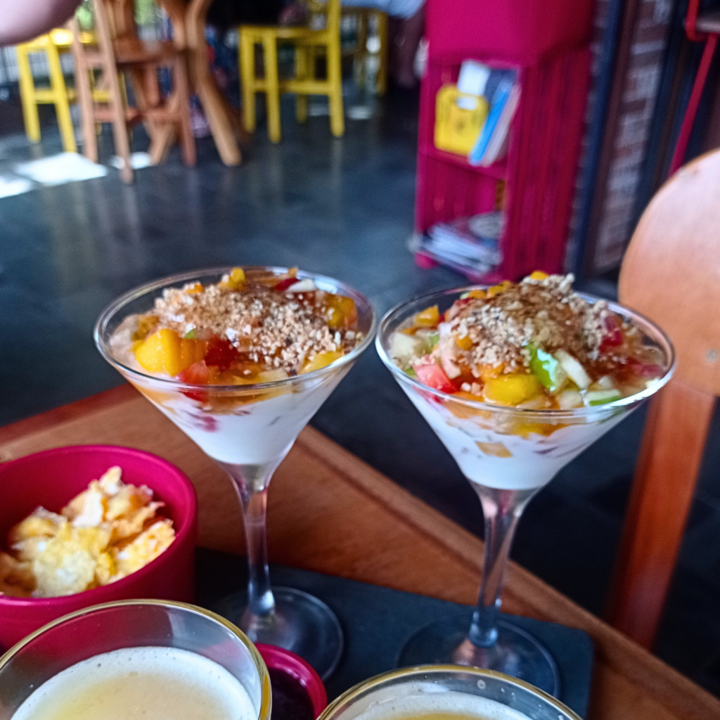 O peito de frango empanado com panko, molho de tomate artesanal e purê de batata rústico era o cúmulo da comfort food; na medida para alimentar o estômago e a alma, servido no almoço por 46,00. Salada da casa por 29,00, Picadinho por 51,00 e, para quem quiser dar aquela extrapolada no paladar, filé de Pescada Amarela, com salsa de manga e feijão preto, couscous marroquino e vegetais assados (65,00).