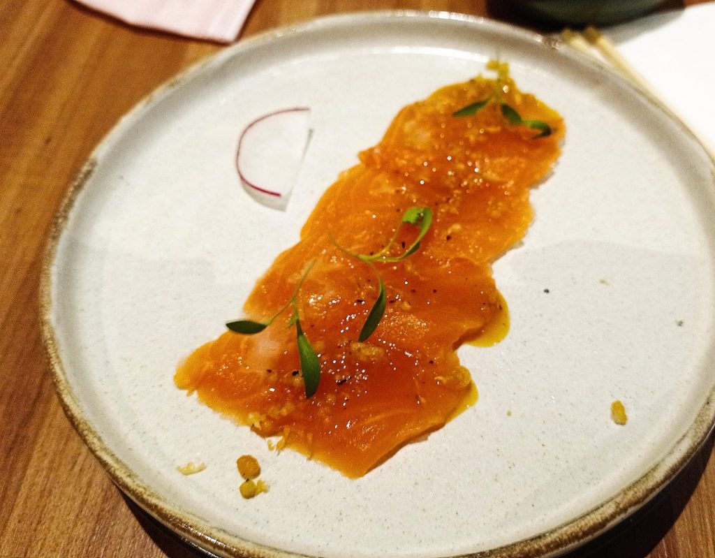 Para petiscar, o cardápio tem opções em estilo “Izakaya” (botequinho japonês), como o Gyoza Buta, de cerdo confitado, legumes e molho huancaína, que é maravilhoso (R$47,00); Kazan Shrimp – muito bom também – de camarões crocantes com molho cremoso bem apimentado (R$57,00).