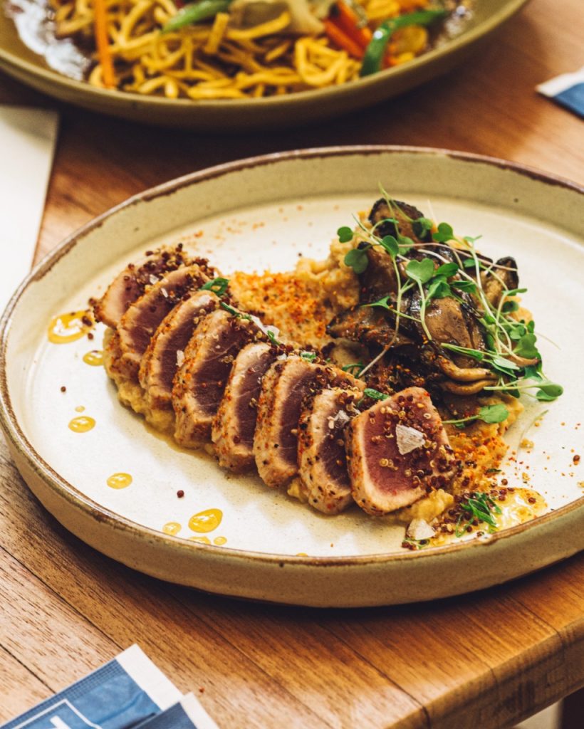 Para uma fome mais intensa, os pratos principais individuais, incluem Yasai, que são vegetais preparados na wok com molho de ostras, acompanhado de proteínas, como Filé Mignon, Camarão, Peixe do dia ou Vegetariano (R$49,00-72,00); o Niku Lima (filé mignon, cebola, batata e teriyaki limeño); e Tuna Quinoa, que é atum grelhado, purê de misso e cogumelos defumados, que eu adorei (R$69,00).