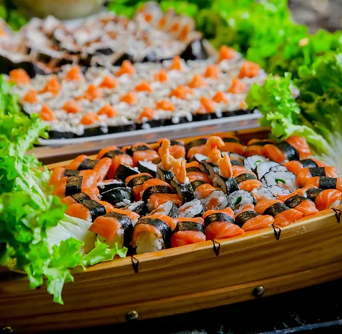 Para quem não estiver empolgado para pizza, opções para montar uma salada, acompanhamentos variados e pratos como costelinha ao barbecue estão disponíveis também à vontade no buffet, que ainda tem uma parte dedicada a sushis e sashimi de salmão.