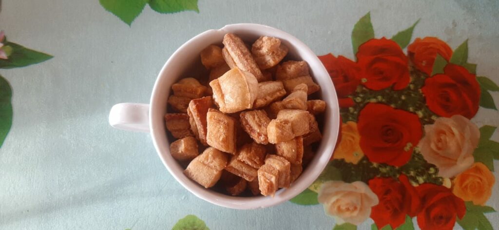 - Torresminho de Barriga, picadinho, quase uma pipoca do Commercial São Benedito