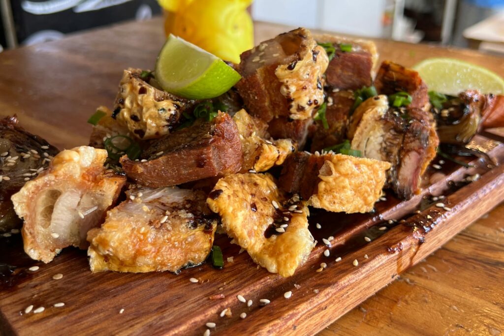 - Croque de bochecha suína do Xaman