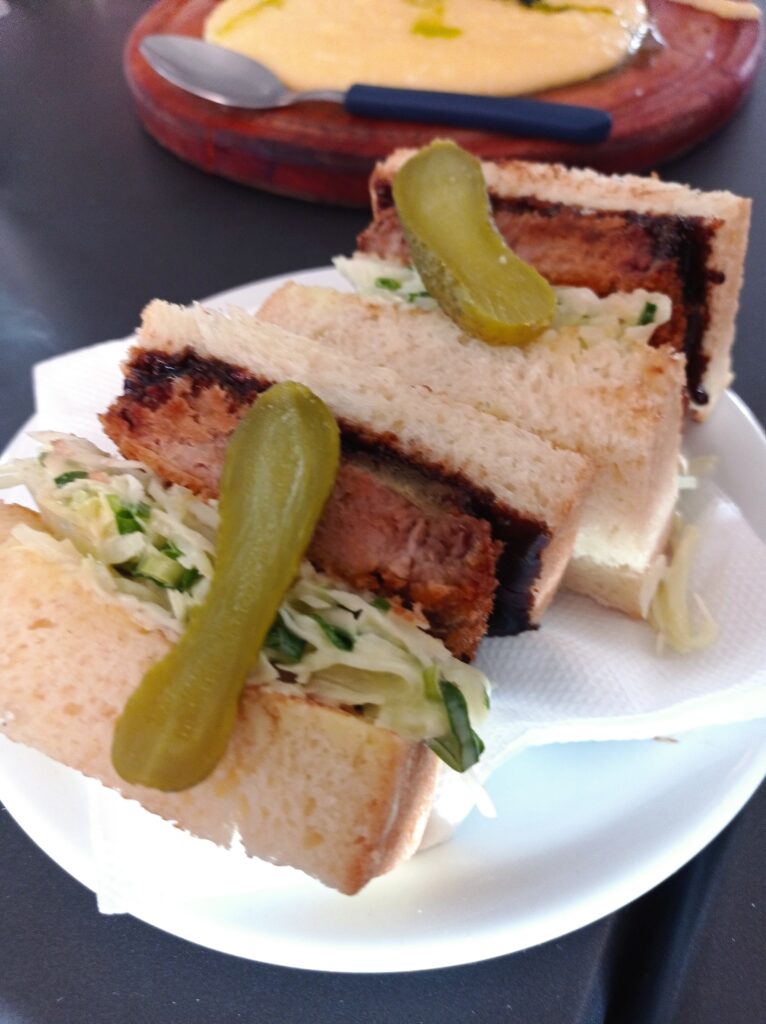 Para quem preferir um delivery, o Sandô também faz um Katsu Sando bem gostoso, com pão da casa, 120g de costelinha empanada e temperada com gengibre, sal, cebola e alho, molho de maionese japonesa com mostarda dijon, repolho picado e picles (R$29,70). A receita também pode ser com frango empanado ao invés da costela (R$26,70) ou com carne bovina e blend de queijos na versão “prensadinha” (R$19,70).
