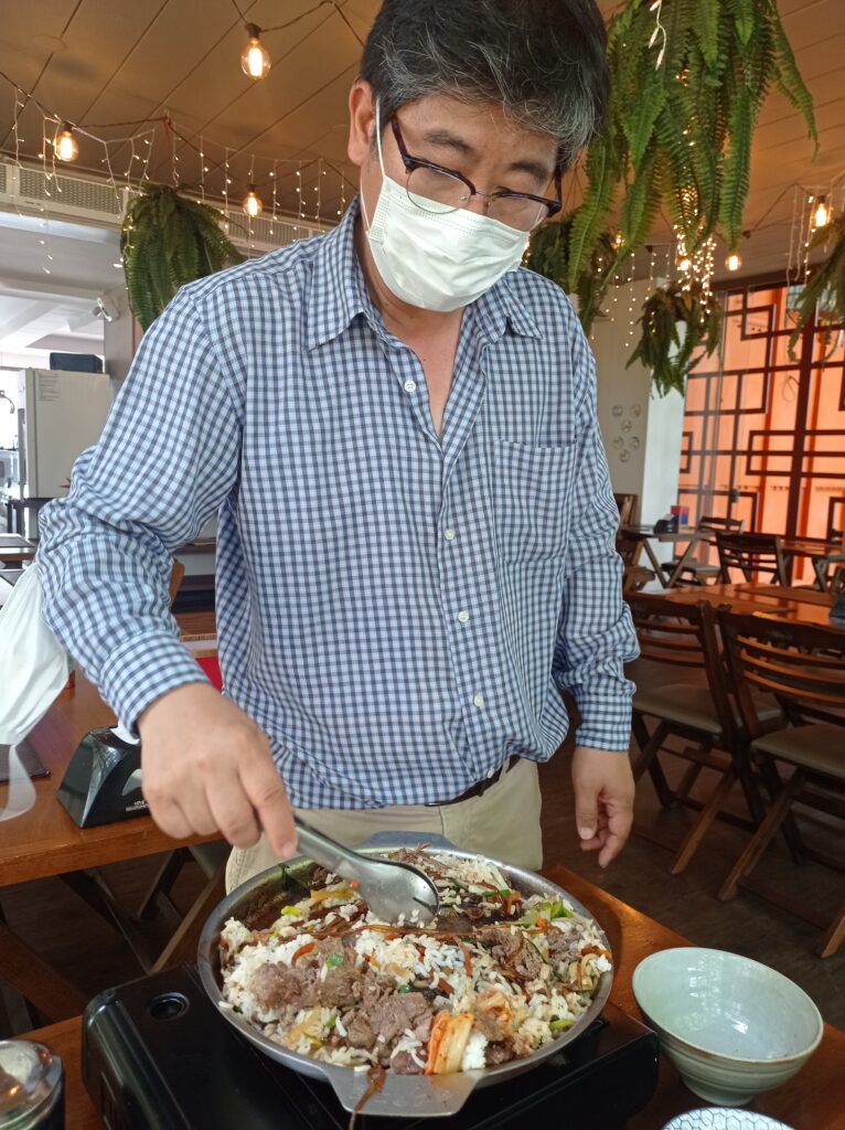 As notas super picantes estão lá; o ponto perfeito dos legumes, como a abobrinha em tiras; as combinações surpreendes, tipo a panqueca de kimchi e a carne suína com abacaxi, que são entradas; serviço em pratinhos típicos; o uso do hachi de metal… enfim, tudo ali me fez sentir em um pedacinho da Coreia.