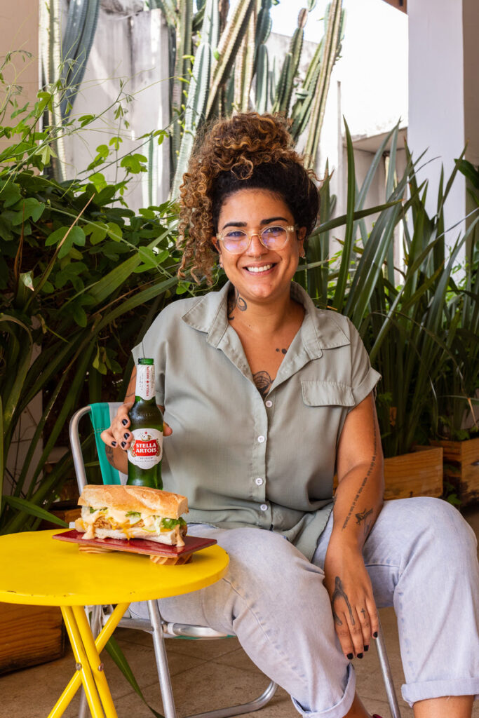 O Mimo Bar, da chef Catarina Freire, com o prato “Aonde Cheguei”: um sanduíche de frango frito com maionese picante de bacon, queijo e picles de maçã verde.