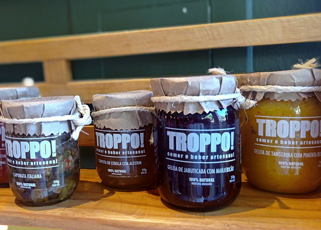 Para levar para casa? Patês franceses divinos do Realejo; embutidos artesanais da lenda Leo Hamu; empanadas congeladas da De Paulina; cookies muito gostosos do Da Cookies, feitos por Davi Fischer; suco comestível da Naturi; produtos sem glúten, sem lactose ou veganos; sorvetes sem açúcar da Benedito Sorvetes, entre muitos outros.