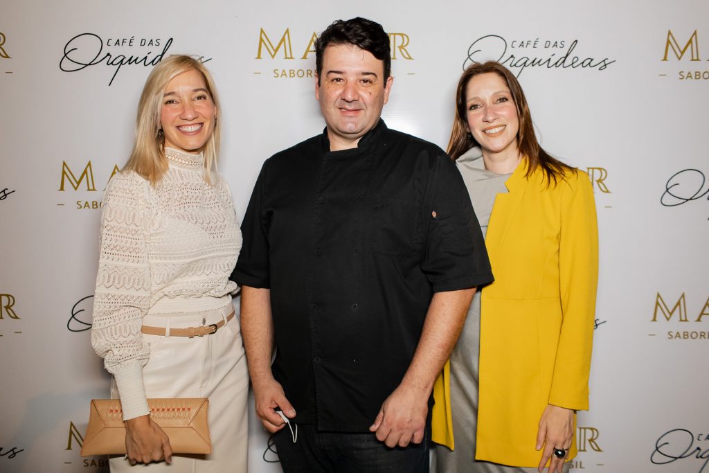 Chef Marcello Piucco entre as irmãs Marília e Simone Turíbio