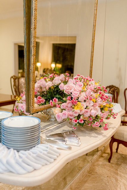 - Um jantar para cerca de 25 convidados brindou a data, na casa da família de Raphaela, no Jardim Pernambuco, endereço nobre do Rio de Janeiro. A chef Roberta Pederneiras comandou a preparação das entradas do jantar. Já as amigas Karina Fernandes e Cristina Mayer reuniram-se para compor o menu harmonizado com maestria pela dupla em conjunto com a anfitriã.