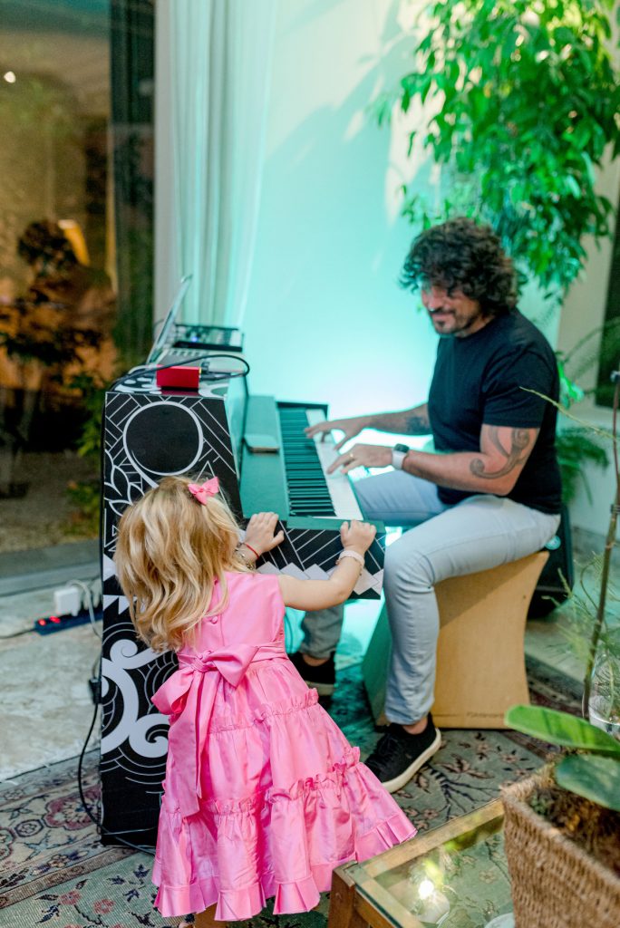 - Em meio às centenas de flores da ornamentação idealizada por Cristina Lips, o pianista Glaucio Cristelo, conhecido como Piano Rock, tocou inúmeros sucessos na noite, que contou com deliciosas sobremesas e doces, parte preparados pela brasiliense Rayná Andrade. De Brasília também foram as criativas lembranças criadas pela paper designer Fabiani Christine da RememBear.