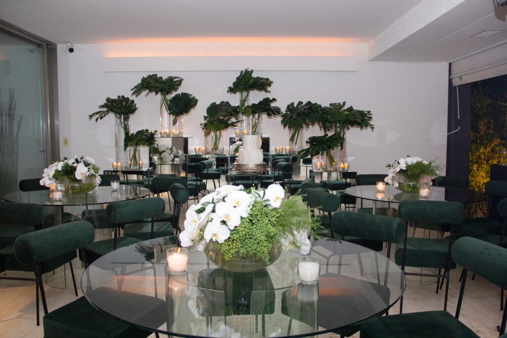 - A decoradora Valéria Leão Bittar assinou a ambientação da noite nas cores branca e verde musgo, tudo com um toque de discrição, uma das marcas registradas do aniversariante. A banda de jazz Anderson Estima animou o encontro que também contou com o som do DJ brasiliense DuMorera. O chef Marcelo Petrarca, do Bloco C, assinou as comidinhas servidas na comemoração regada a drinques criativos preparados na hora pela Mixzz Mixologia.