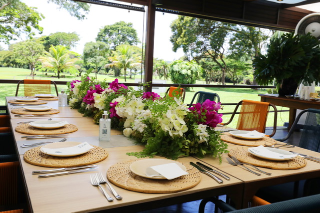 - Com decoração de Valéria Leão Bittar, em forma de arranjos de orquídeas e demais flores nas cores violeta e branco, a comemoração contou com cardápio especial elaborado pela chef Luiza Jabour, com destaque para as paellas de frutos do mar e de frango servidas na ocasião, que contou com doses generosas de champanhe Veuve Clicquot Brut geladinho.
