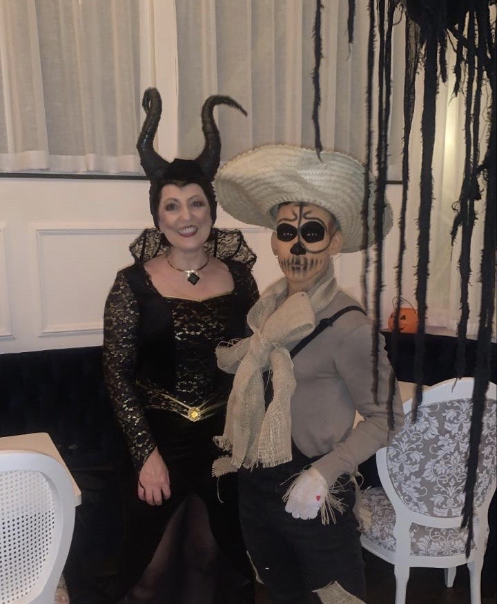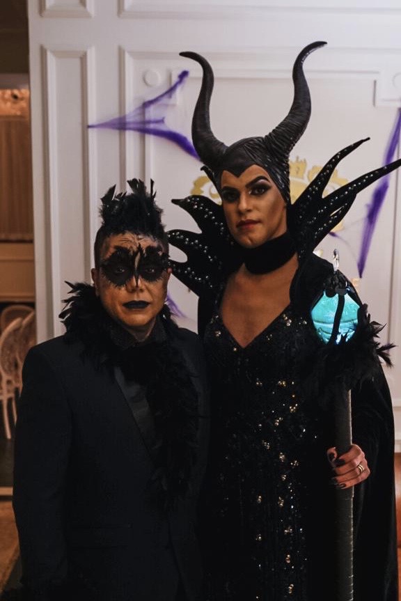 Anfitriã Matilde Gemeli com João Rocha no Halloween do The Queens Place Greenhouse
