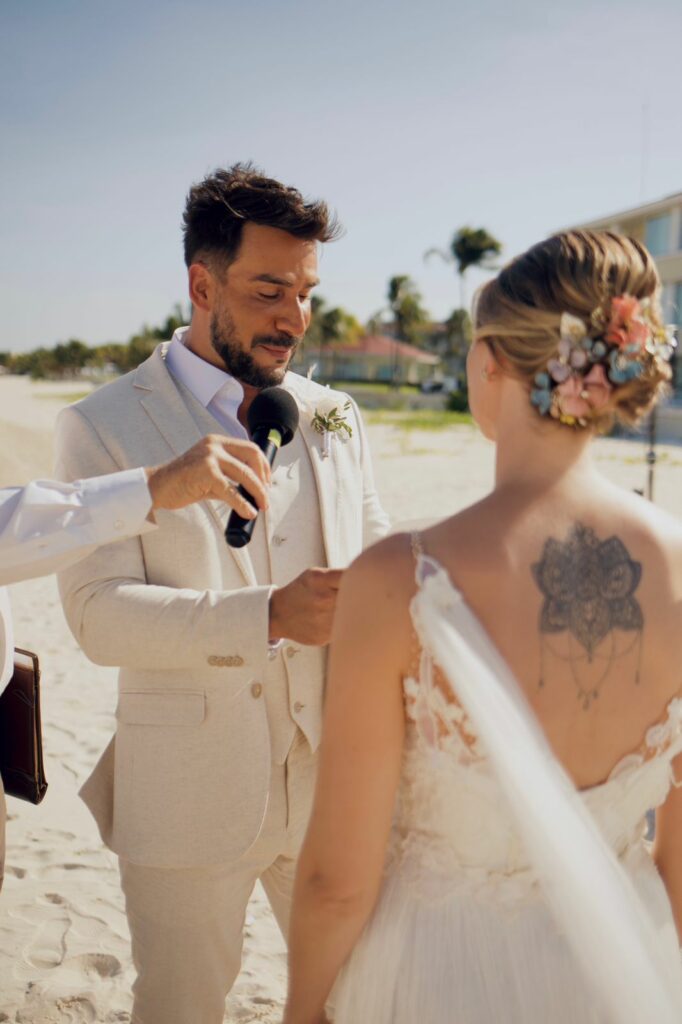- “Nós nos conhecemos em uma praia. Depois, fizemos um filho também em uma e descobrimos que íamos ter uma menina com o chá revelação na praia. Passamos boa parte das nossas vida com os pés na areia. Agora, casarmos em um local lindo como esse não deixa de ser uma metáfora do relacionamento que temos como família”, disse, emocionado, Julio Rocha.