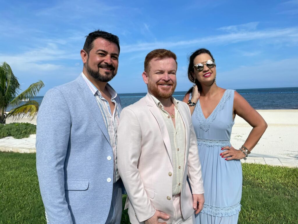 - O luxuoso resort Moon Palace Cancún foi o cenário do casório de Julio e Karoline, que fazem grande sucesso nas redes sociais mostrando o cotidiano da família. O ator revelou para a coluna que casar no local era um sonho, já que a história dele e de Karoline sempre foi marcada por praias. Desejo que foi realizado ontem, tendo um mar azul ao fundo.