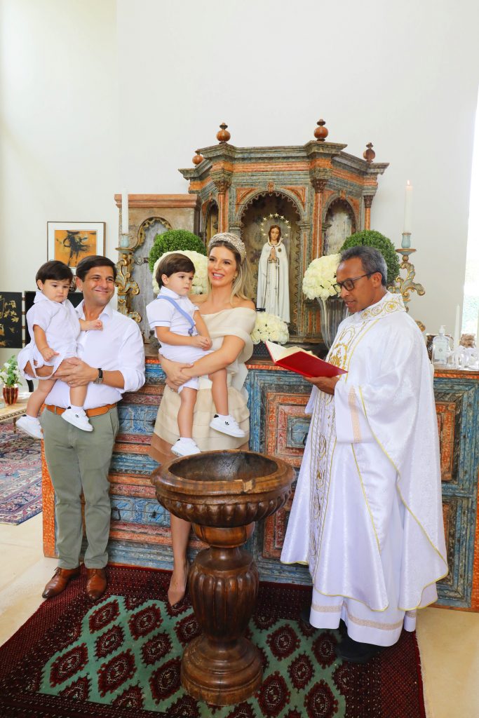 Na presença da família e dos amigos mais próximos, o empresário Juliano Amorim e a mulher, a influenciadora digital Duda Portella Amorim batizaram o filho Joaquim, na manhã do último sábado. A capela da casa da avó paterna, Elizabeth Amorim, no Lago Sul, foi o local escolhido para o batizado, que foi conduzido pelo padre Vanilson. Na sequência os convidados foram recebidos para um almoço.