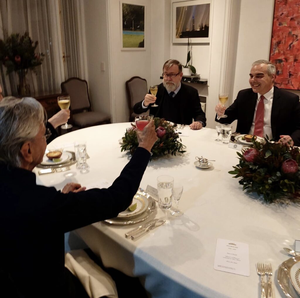 - O anfitrião da homenagem foi o embaixador do Brasil no Chile, Paulo Roberto Soares Pacheco, que recebeu na residência oficial da embaixada, no bairro de El Golf. O encontro foi prestigiado pelo ministro da Cultura chileno, Jaime de Aguirre.