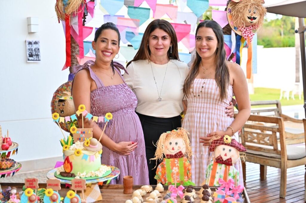 A casa da família no Lago Sul foi o local escolhido para o evento, que reuniu cerca de 50 convidados. Filha de Caroline com o empresário Guilherme Soares, o bebê tem previsão de chegar ao mundo no final do mês. A tarde de festa contou com cardápio preparado no capricho pelo chef Ivanilson Souza, com iguarias típicas das festas juninas. A decoração, feita com esmero, foi idealizada pela avó Nelma Caixeta, que ganhou elogios pela criatividade.