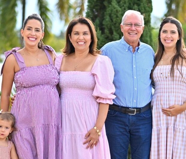 A felicidade chegou em dose dupla para os empresários Geraldo e Nelma Caixeta. Conhecidos na capital pela empresa Artline, que comandam juntos há muitos anos, o casal ganha nas próximas semanas mais duas netas. As filhas, a empresária Caroline Caixeta e a advogada Isadora Caixeta, estão na doce espera. E para celebrar a chegada de Teresa, segunda filha de Caroline, os Caixeta promoveram um chá de bebê com tema junino.