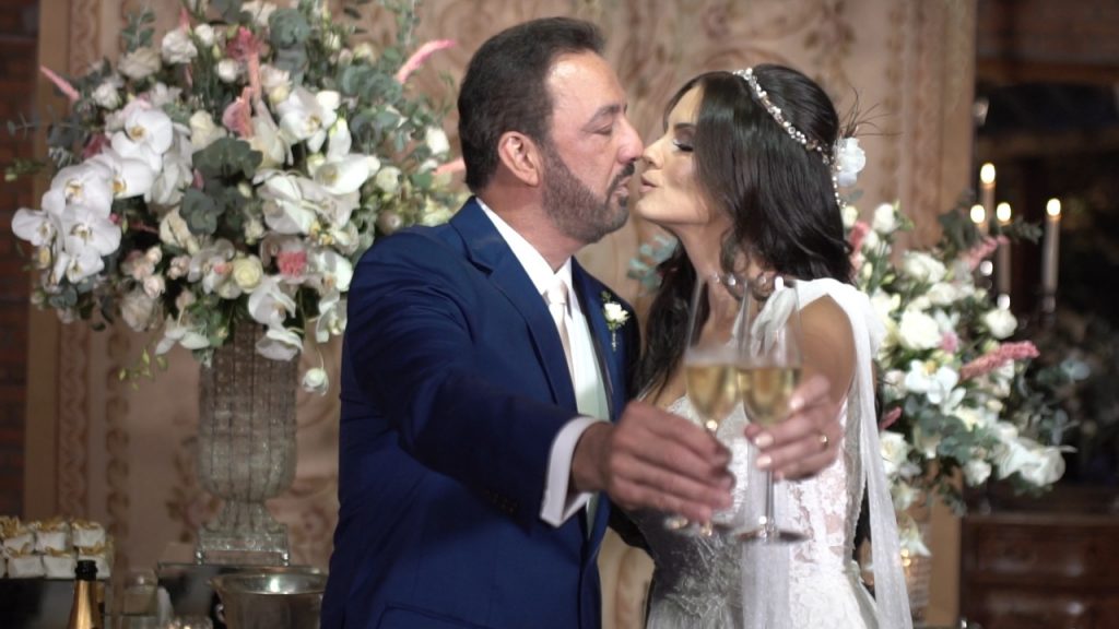 Pensando na saúde e na segurança de todos, a celebração foi transmitida ao vivo, pelo canal do casal no YouTube. Assim, outros familiares e amigos próximos dos noivos que não conseguiram estar presentes puderam acompanhar o casório. A noiva cuidou de todos os detalhes: a escolha da decoração, do bolo e até do cardápio do jantar servido após o sim.