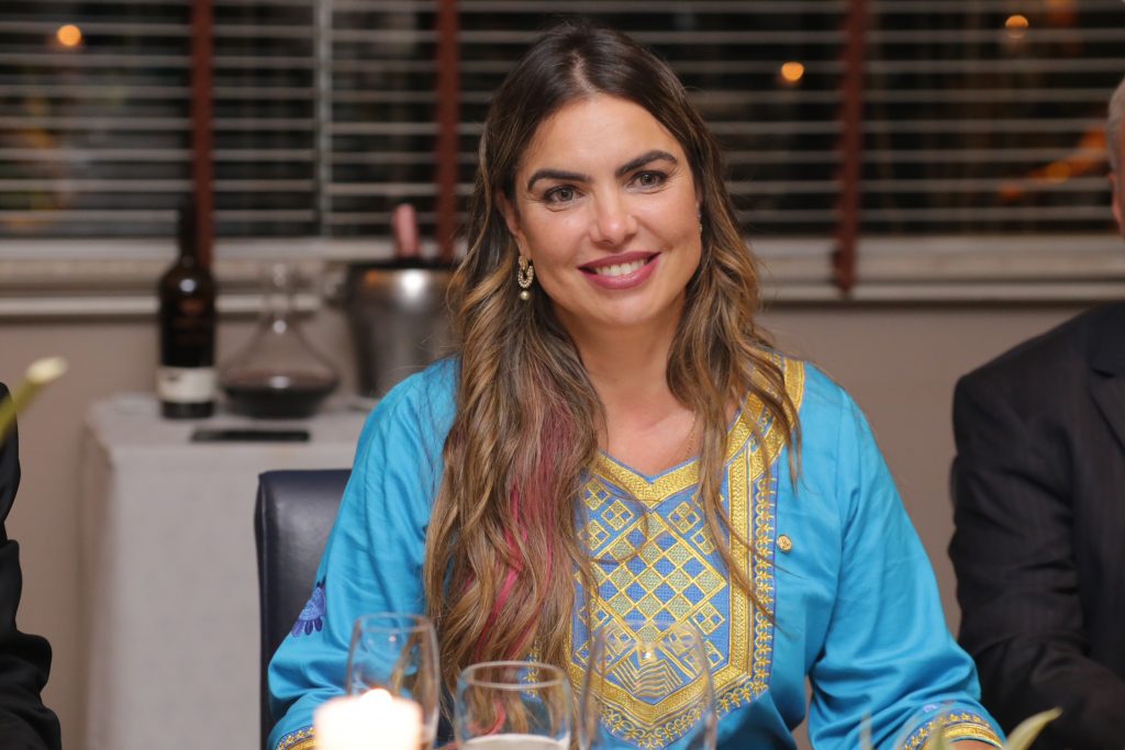 - A noite contou com a presença de 22 convidados, entre políticos, diplomatas e jornalistas. O salão privado do restaurante ganhou ambientação especial do decorador Cléber Santos, com arranjos de frutas e flores em profusão com enormes candelabros de cristal. Tudo de extremo bom gosto para que o encontro fosse especial.