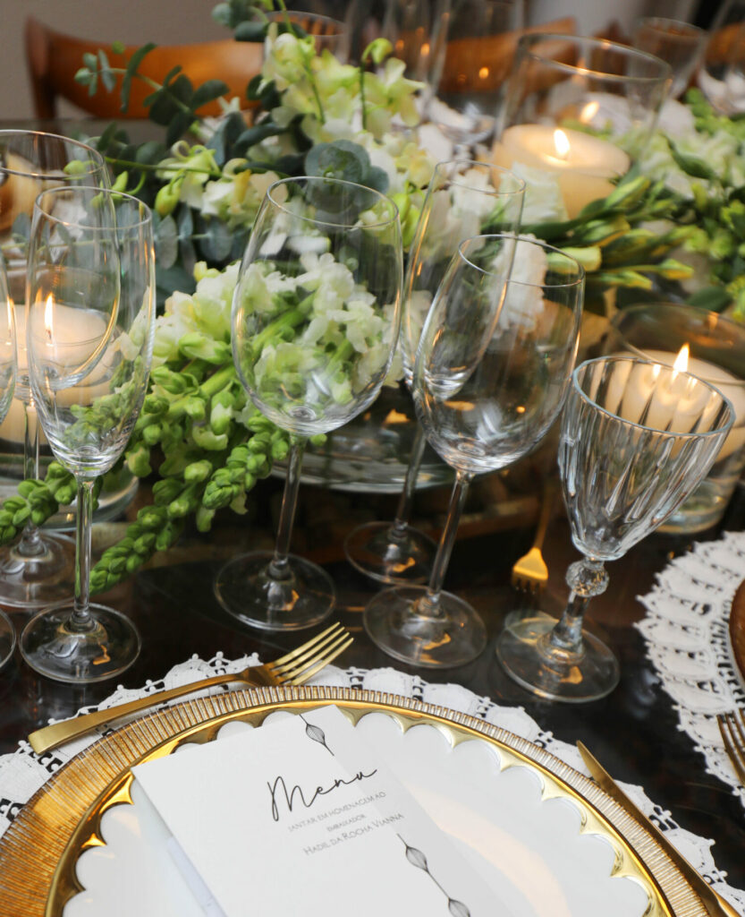 - A casa dos anfitriões no Setor de Mansões Park Way foi o cenário do encontro intimista que contou com ambientação da decoradora brasiliense Cris Sigmaringa e cardápio especial elaborado pela banqueteira Renata La Porta. O jantar foi harmonizado com vinhos italianos e franceses de safras especiais e champagne Taittinger geladinho.