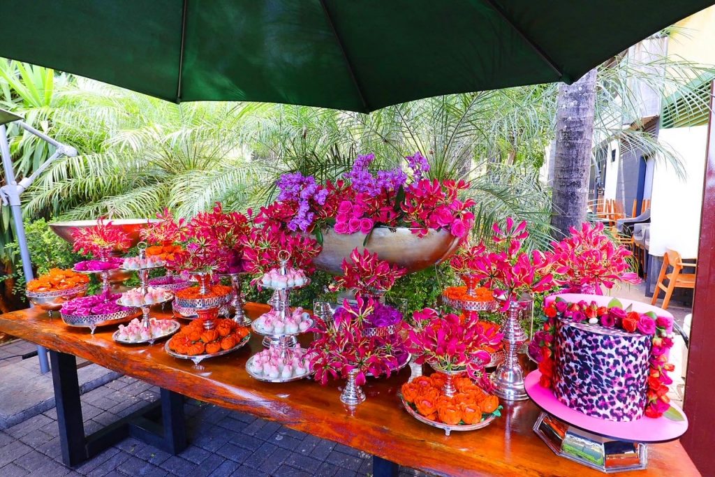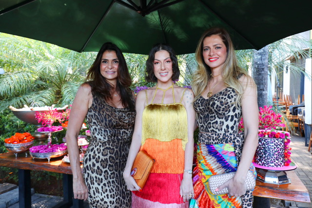 - O cerimonialista Tiago Correia foi escalado para organizar o encontro, que contou com ambientação do decorador Robinho Lemos. O animal print e os tons de rosa ganharam destaque nos arranjos das mesas e na mesa do bolo. Até o champanhe servido, o francês Piper-Heidsieck, ganhou a cor da festa, que movimentou o circuito social.