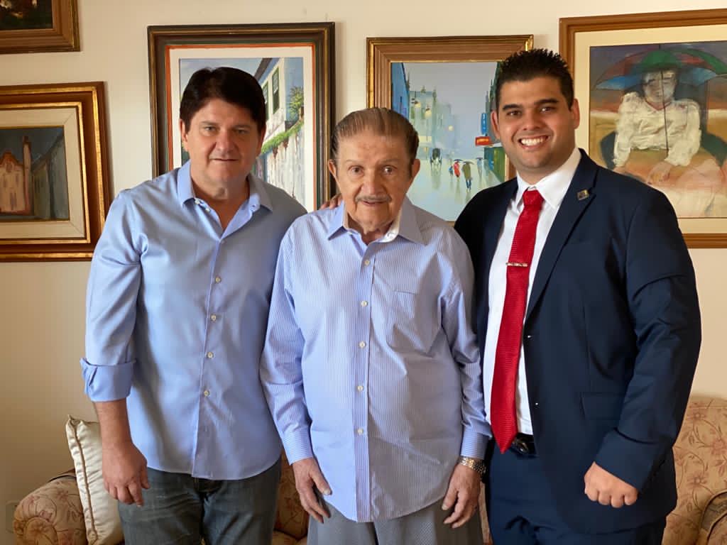 Ex-presidente do Senado Mauro Benevides entre o filho Carlos Afonso e o neto Davi Benevides