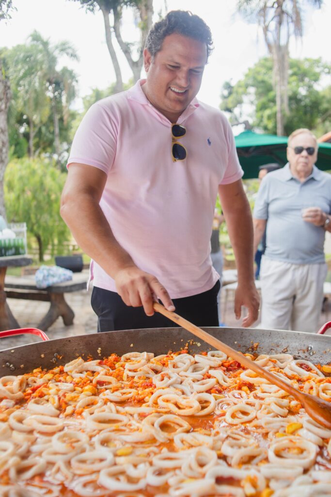 Cerca de 150 convidados marcaram presença no almoço, que teve como cardápio principal uma saborosa paella de frutos de mar, preparada no capricho pelo empresário Bruno Bontempo, amigo de longa data dos aniversariantes. Para acompanhar, uma seleção de drinques autorais preparados na hora por uma equipe de bartenders da JF Adrielio Drinks. Filha do casal, a arquiteta e empresária Sofia Peixoto foi a responsável pela ambientação do encontro em volta da piscina da residência.