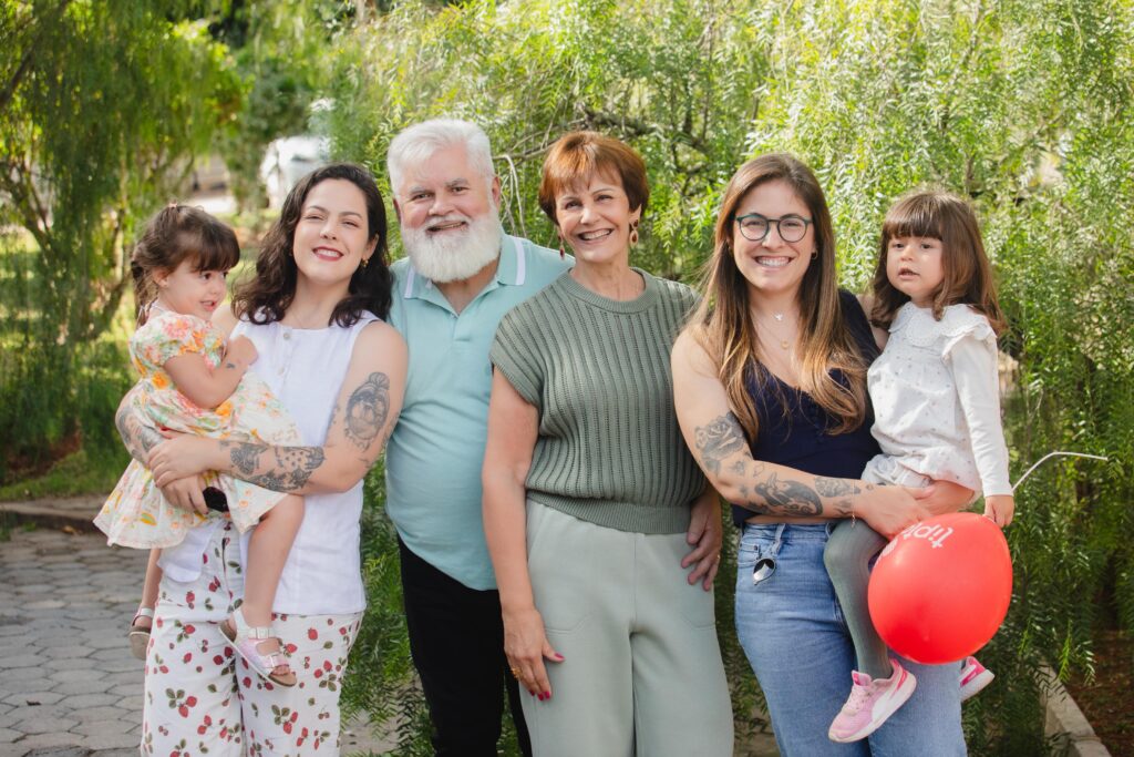 O momento dos parabéns foi o ponto alto da comemoração. Cercado pelas filhas e netas, o casal assoprou as velas do bolo com detalhes em macarons, criado exclusivamente para a ocasião pela Nube Café, de propriedade das filhas Sofia e Joana Peixoto. Na sequência, foram servidas as sobremesas, com destaque para o manjar feito por Dora, cozinheira da família, que ganhou elogios pela tarde, e para os bombons de morango, os brigadeiros e os doces de pistache criados pela doceira Cirônia.