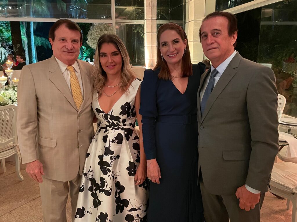 - A decoração assinada por Isabela Vieira elegeu a cor branca em profusão com belos lustres de cristal. Já a banqueteira Khenia Gomes, do buffet Degustare, foi a responsável pelo jantar, com destaque para os camarões flambados e o ravioli de burrata com lascas de limão siciliano servidos.