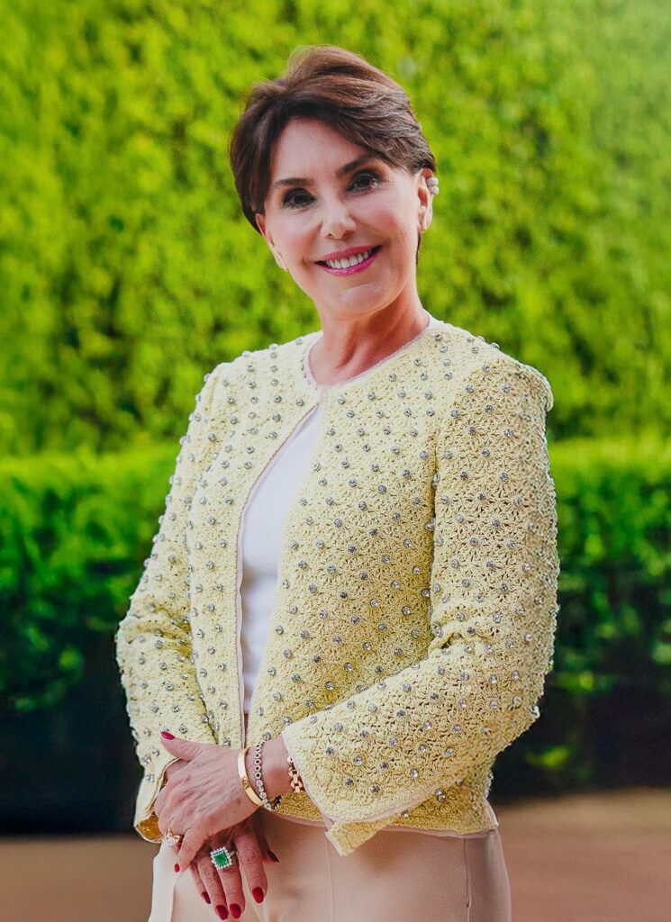 Nome querido e muito respeitado do circuito social do Distrito Federal, Ana Maria Gontijo é um dos grandes exemplos de perfeita anfitriã da capital do Brasil. Suas festas, almoços e jantares figuram entre os melhores do país. Para a mesa preparada para o livro, Ana escolheu uma mais delicada, com serviço dos Pavões, um conjunto de porcelana da Companhia das Índias, Dom João VI, com decoração em “família rosa” e motivos de pavões. “Receber bem é uma de minhas paixões. Uma mesa bonita é uma alegria para os olhos. Faço tudo com muito carinho”, afirmou Ana.
