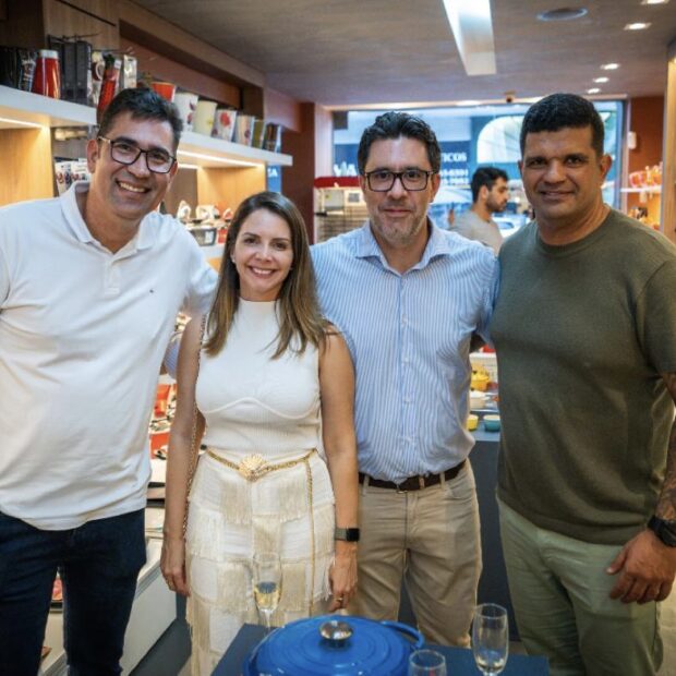 Representantes da marca, Moisés Barbosa, Juliana Fernandes e Alexandre Grifino, CEO da América Latina da Le Creuset, participaram da noite de lançamento do novo espaço. “A All Kitchens é o maior representante da Le Creuset no Brasil e tem produtos de todas as cores, tamanhos e modelos da marca, com 100 anos de garantia. Costumo dizer que a Le Creuset é a ‘Louis Vuitton’ da cozinha”, brinca Wallace Santos, proprietário da All Kitchens.