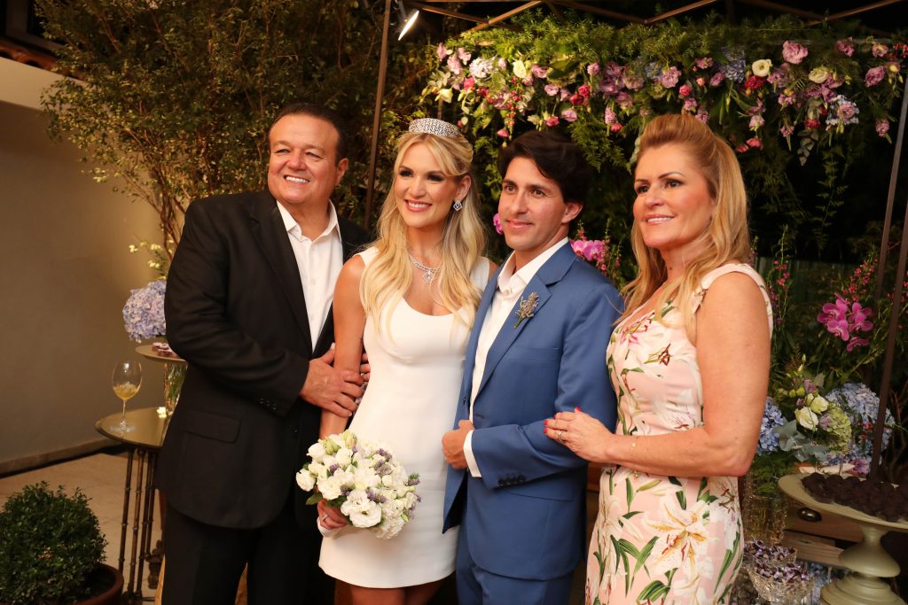 - Após o sim conduzido pelo religioso, que é um dos fundadores do Mosteiro de São Bento de Brasília, os noivos seguiram para a festa realizada na casa da família do noivo na QL 8 do Lago Sul. A noite contou com a presença de 100 convidados.