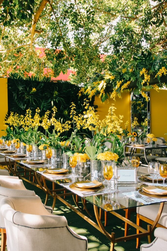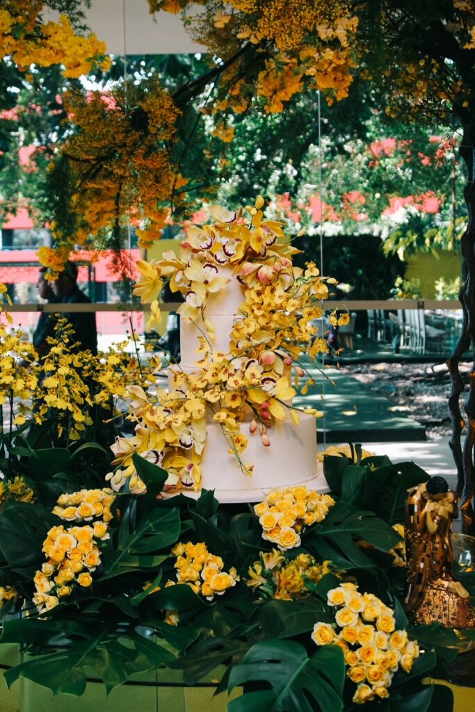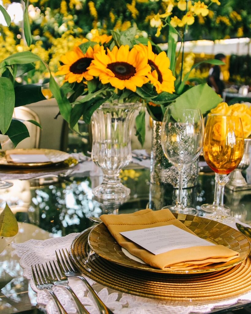 - Em seguida, os noivos seguiram e abriram os salões que ganharam a cor amarela como destaque na decoração do arquiteto Ricardo Azevedo. Por lá, todos foram recebidos para um almoço com cardápio especial desenvolvido pela banqueteira Renata La Porta.