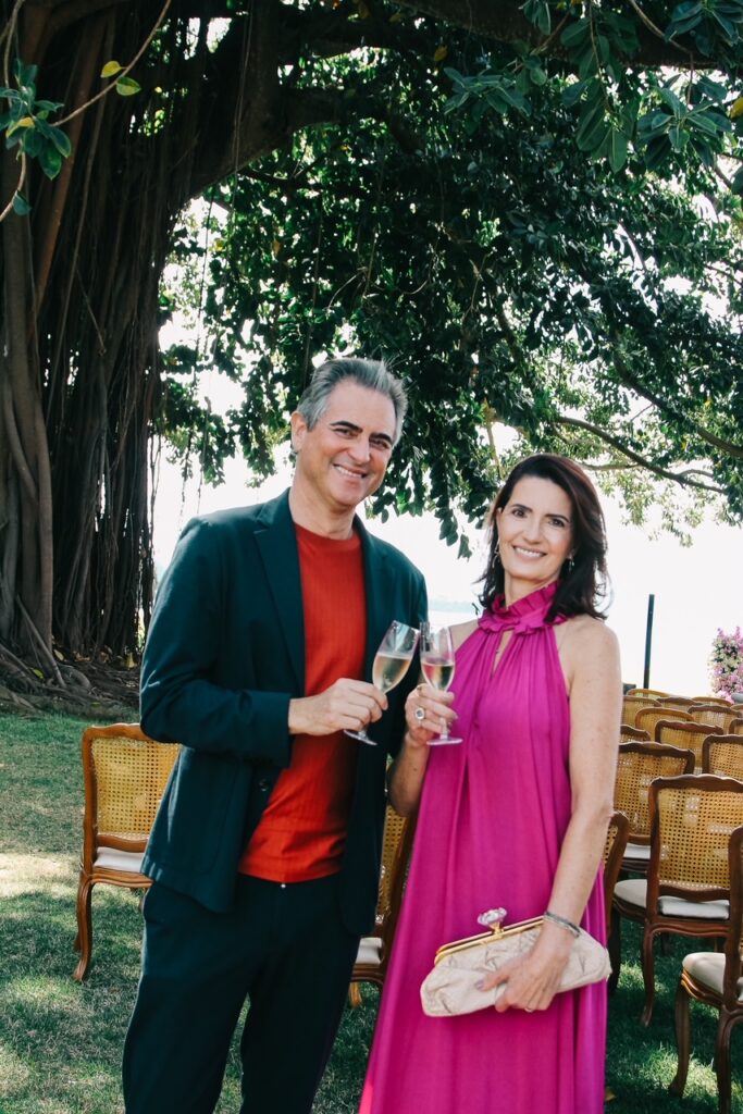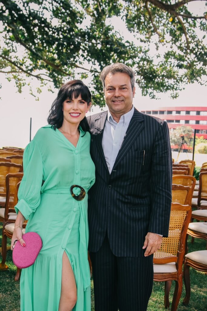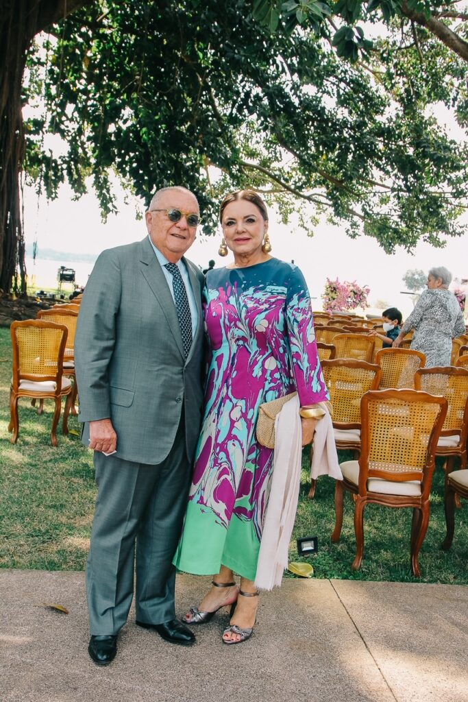 - Felizes na presença de amigos e familiares, os noivos foram bastante cumprimentados pelos convidados e pelas madrinhas do casório, que na ocasião usaram joias criadas pela Verde Joias de Recife, inspiradas nas folhas da gameleira do jardim do Brasília Palace.
