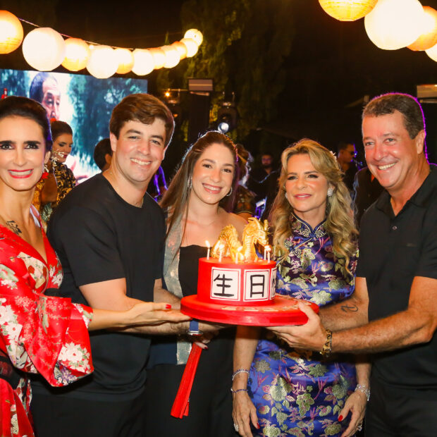 Ex-primeira-dama e empresária Karina Curi abriu a residência da família no Lago Sul para uma festa com inspiração japonesa. A noite celebrou o aniversário da empresária Claudia Melo, grande amiga de Karina. A noite reuniu cerca de 140 convidados com ambientação de Paulo Yoshida.