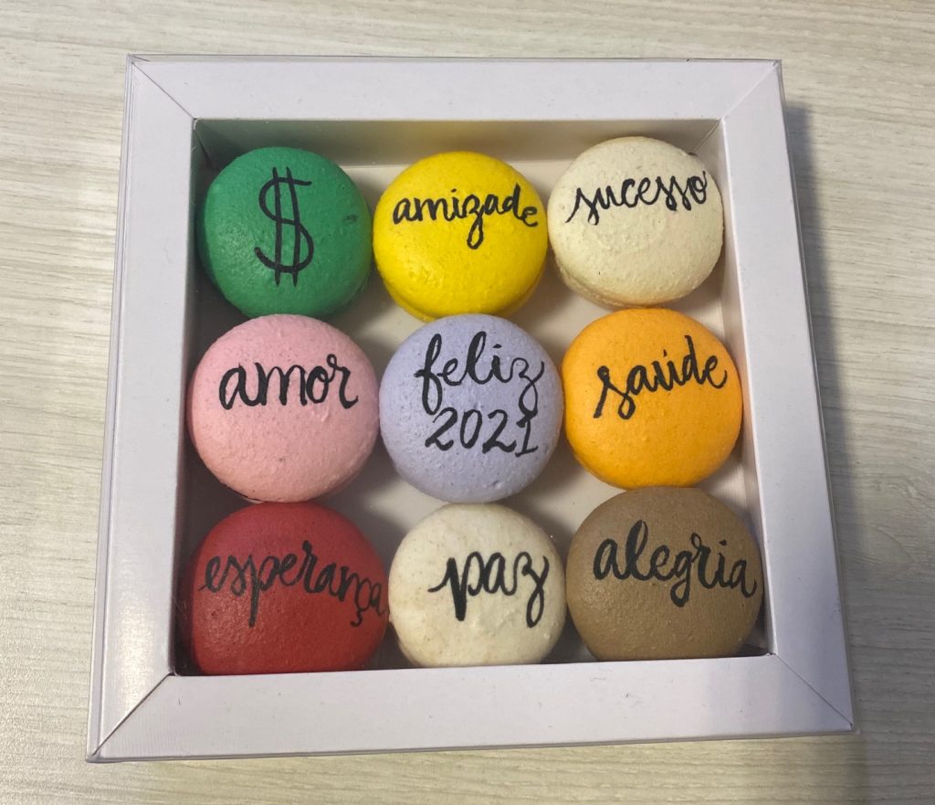 As irmãs empresárias Sofia e Joana Peixoto estão lançando os produtos da Nube Café (@nubecafe) para o Natal deste ano. Entre os destaques está a caixa que traz deliciosos macarons com mensagens positivas para 2021.