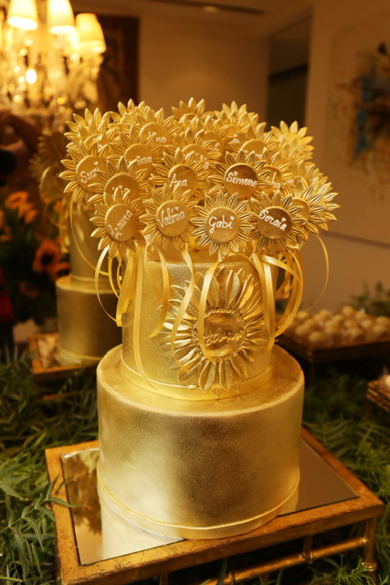 - A decoradora Valéria Leão Bittar assinou a ambientação da tarde, que teve como destaque centenas de girassóis. “A inspiração foi a força e também a representatividade que o girassol possui”, disse Valéria. Já o Degustare Buffet serviu as delícias da comemoração com destaque para o Ravioli de burrata com lascas de limão siciliano ao molho de pomodoro fresco com manjericão.