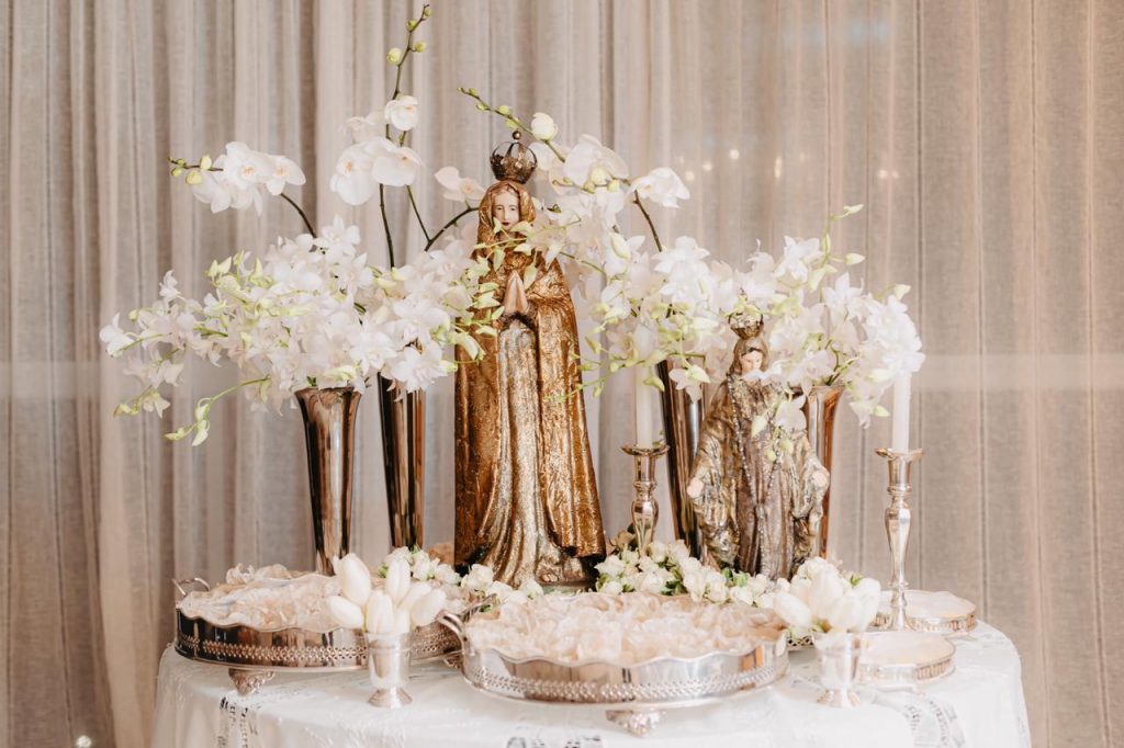 Entre as lembranças entregues aos convidados estavam água benta em frascos de Espírito Santo em prata, além de salvas de prata com o nome gravado de cada convidado. Preocupados com a pandemia e tomando vários cuidados, os anfitriões ofereceram máscaras e álcool em gel personalizados pela Remembear.