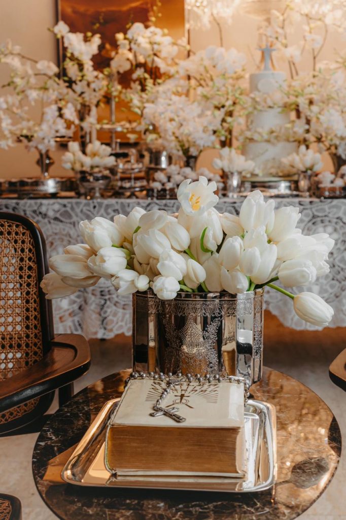 Vestindo um lindo mandrião com 103 anos, relíquia usada nos batizados da família Souza Campos, Maria Isabel virou o centro das atenções, recebendo inúmeros paparicos na ocasião. Também com extremo valor sentimental foi a Bíblia usada no batismo, que pertenceu à bisavó da criança, a saudosa dona Ivonina.
