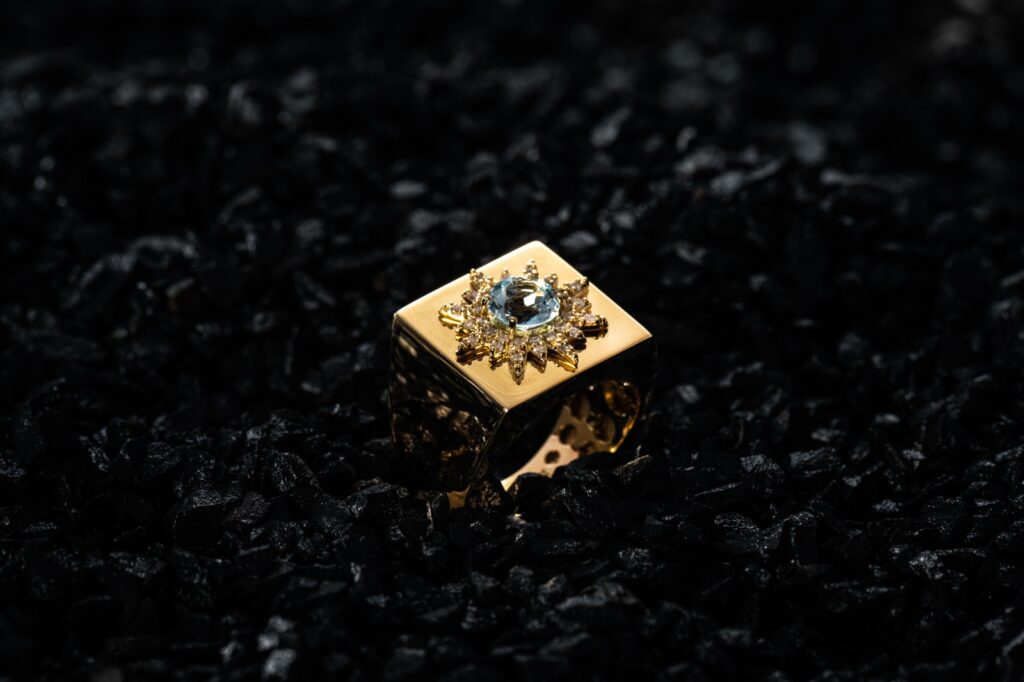 - “Do ano passado para cá, conversei com o Luiz e ele me incentivou a desenhar e dar início ao meu próprio negócio”, diz. “Várias vezes eu sonhava com uma peça, acordava na madrugada, e já ia desenhar para não esquecer. Assim, fui começando a criar as peças que apresentei nessa open collection.” Karinne Pantazis tem ascendência grega e, por isso, escolheu a palavra grega Àvra – que em português significa aura – para ser o nome da joalheria.