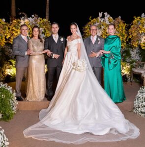 O amor do casal, que já havia se casado no religioso dias atrás, foi abençoado pelos pais que conduziram a bênção dada durante a cerimônia. A noiva, vestindo uma linda criação do estilista libanês Elie Saab, seguiu até o altar sendo conduzida pelo pai Orestes Sales. Foi um momento de muita emoção contagiando todos, em especial o noivo, que aguardava a chegada de sua amada sob o olhar atento de 500 convidados.