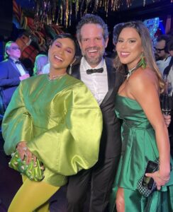 - Arquiteto brasiliense Arnaldo Pinho entre Mileide Mihaile e Paoula Braide no baile pré-carnavalesco do Hotel Rosewood São Paulo