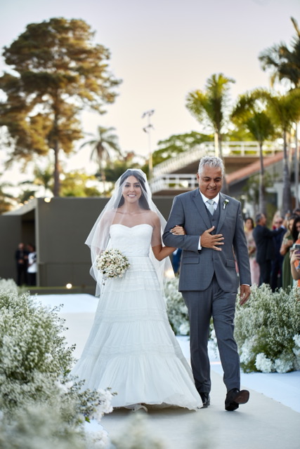 - Sim, às margens do Lago Paranoá. Foi assim que o empresário Igor Claudino e Manuella Cruz oficializaram a união do casal, na residência da família do noivo, no Lago Sul. Na presença de 550 convidados, os noivos celebraram o amor em cerimônia conduzida por Nycholas Pontes e pela juíza de paz, Carla Garcia. Ocasião de muita emoção, quando Manuella, vestindo uma criação da estilista Wanda Borges, entrou com o pai Paulo César ao som da orquestra Toccata.