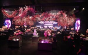 - Os convidados foram impactados, desde o início da comemoração, com um criativo convite prateado com preto, idealizado pela WéS em conjunto com a Scards, de São Paulo. O salão onde ocorreu a festa foi decorado pelo requisitado decorador Daniel Cruz, do Rio de Janeiro, que presenteou o público com uma ambientação exuberante, que incluiu flores suspensas no teto. O moderno hall de entrada ganhou uma imersão em LED, assim como o palco e a cenografia.