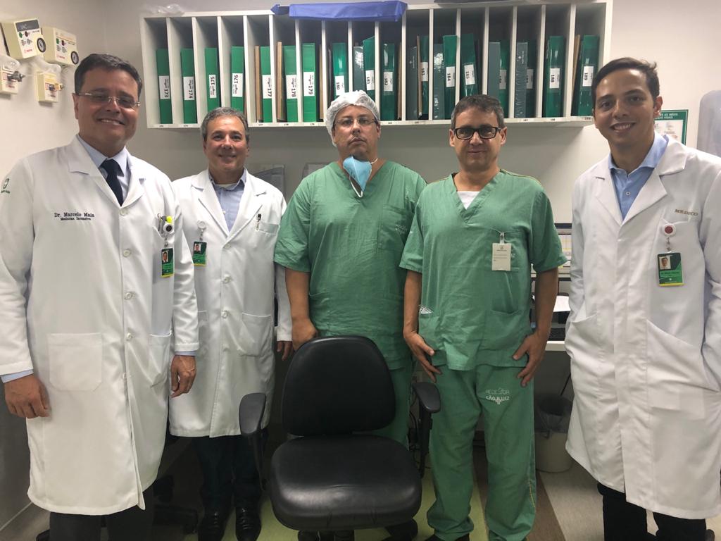 Médicos Marcelo Maia, Rubens Mendonça, Emmanuel Martins, Lucas Vilhena e Gilberto Nogueira da UTI do Hospital Santa Luzia, da Rede D’Or São Luiz