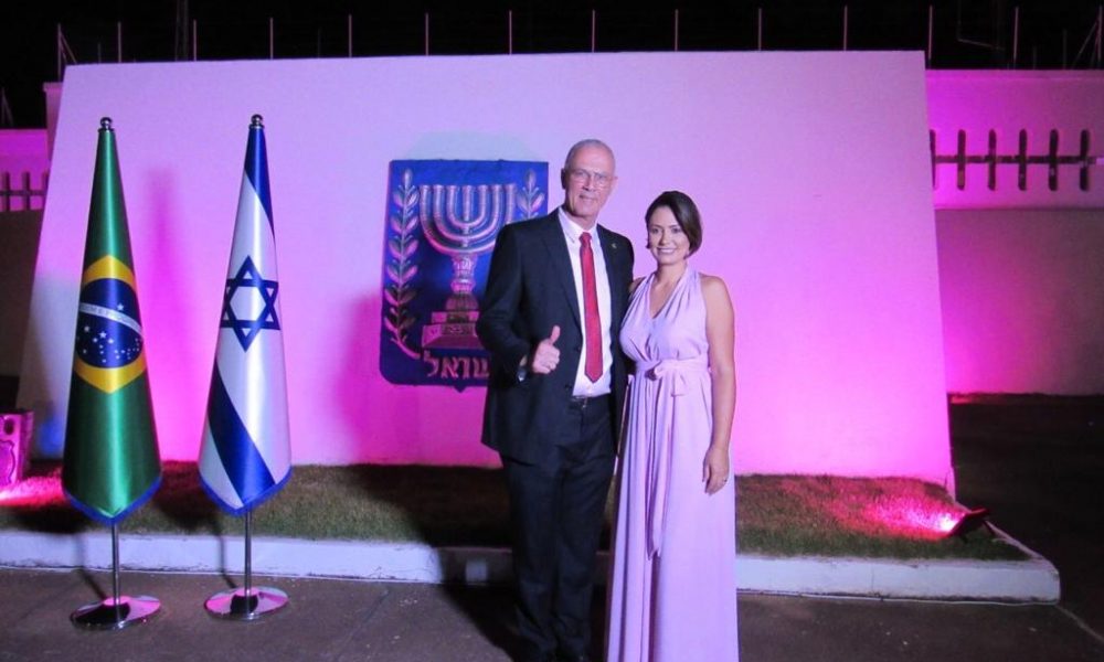 Coluna Marcelo Chaves Embaixador Yossi Shelley e Michelle Bolsonaro inauguram iluminação da Embaixada de Israel para o Outubro Rosa 08/10/2020 8h00